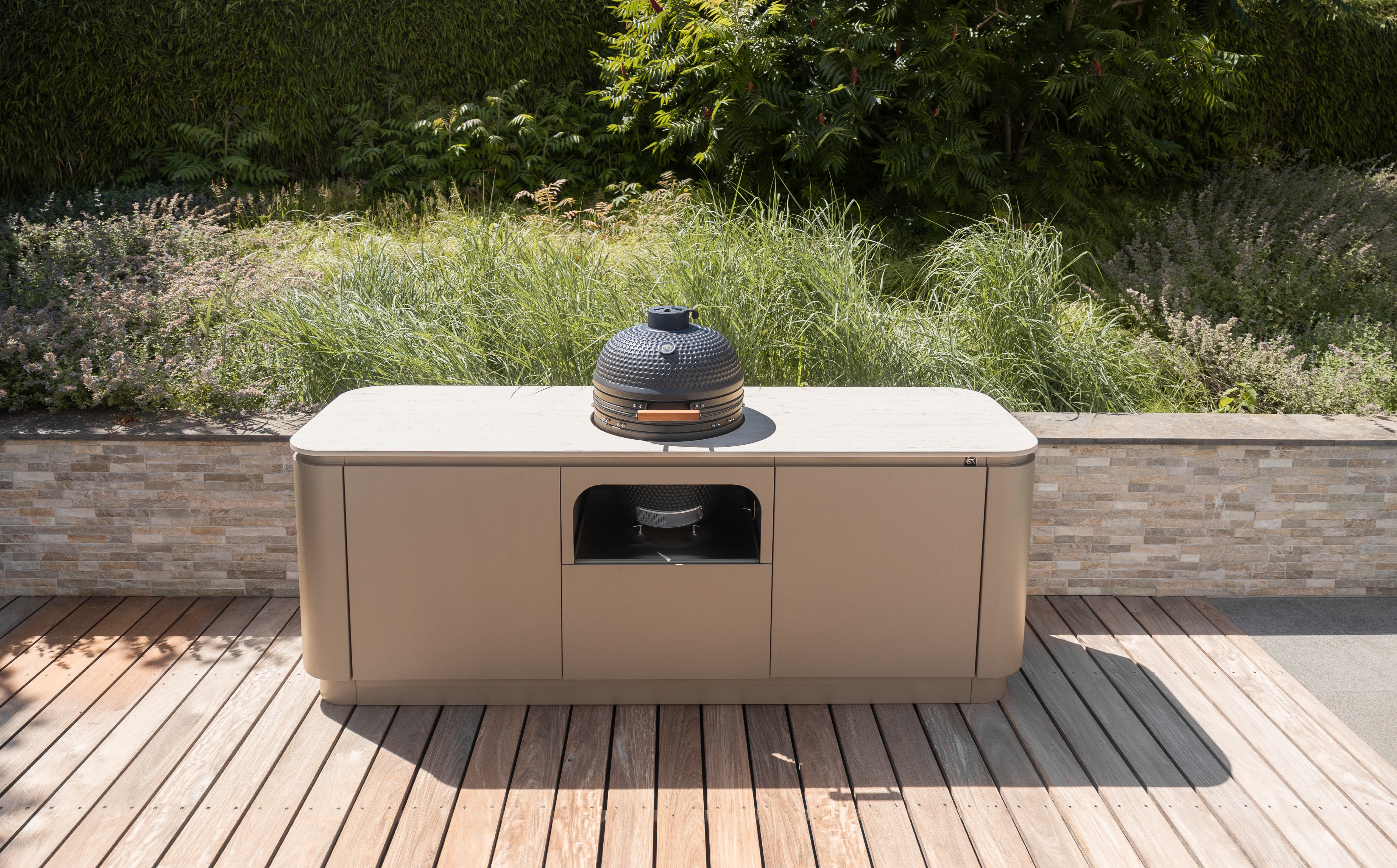 Durch die Kombination hochwertiger Materialien gewährleisten wir, dass die Outdoorküche das ganze Jahr über im Freien stehen bleiben kann, unabhängig von den Witterungsbedingungen.