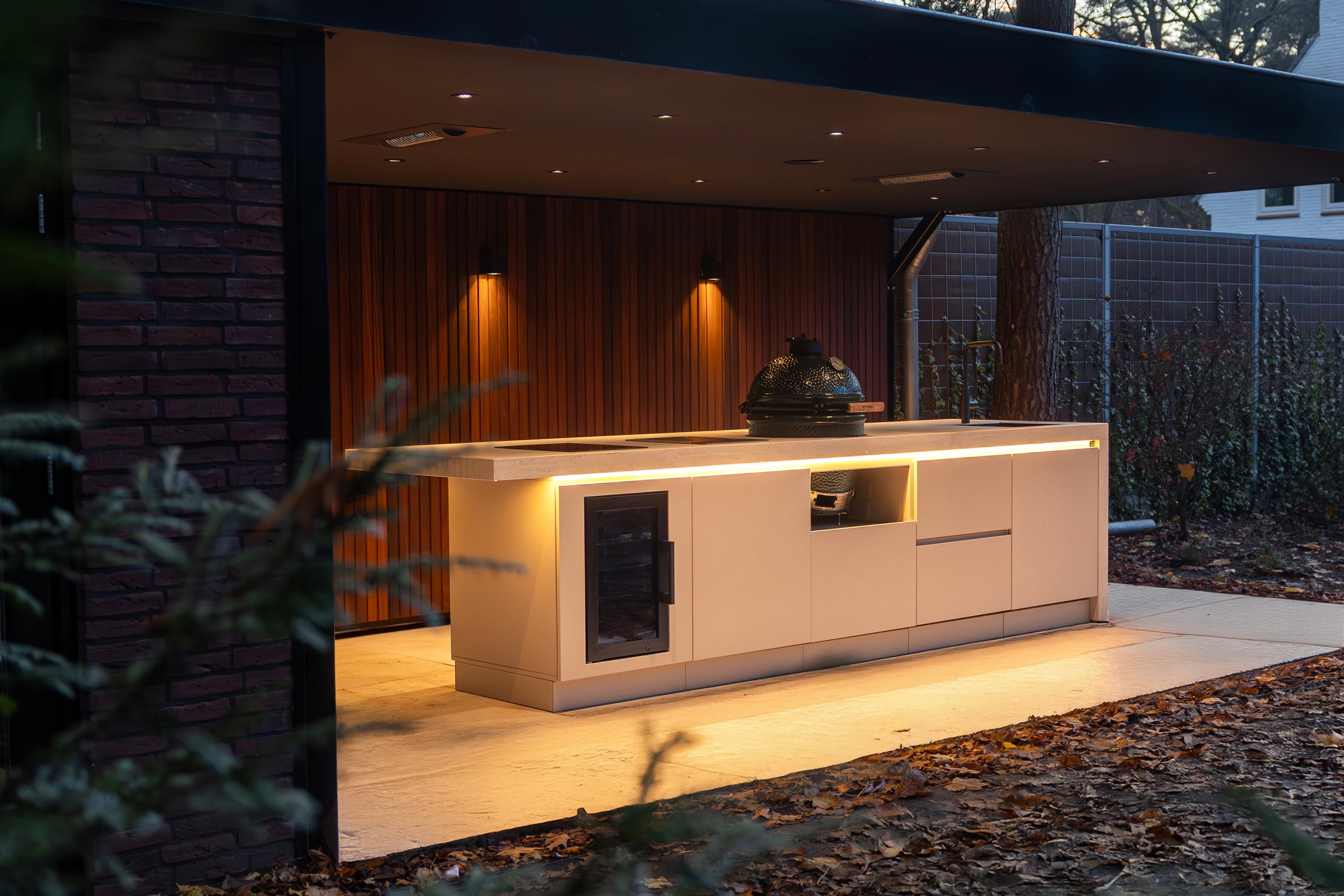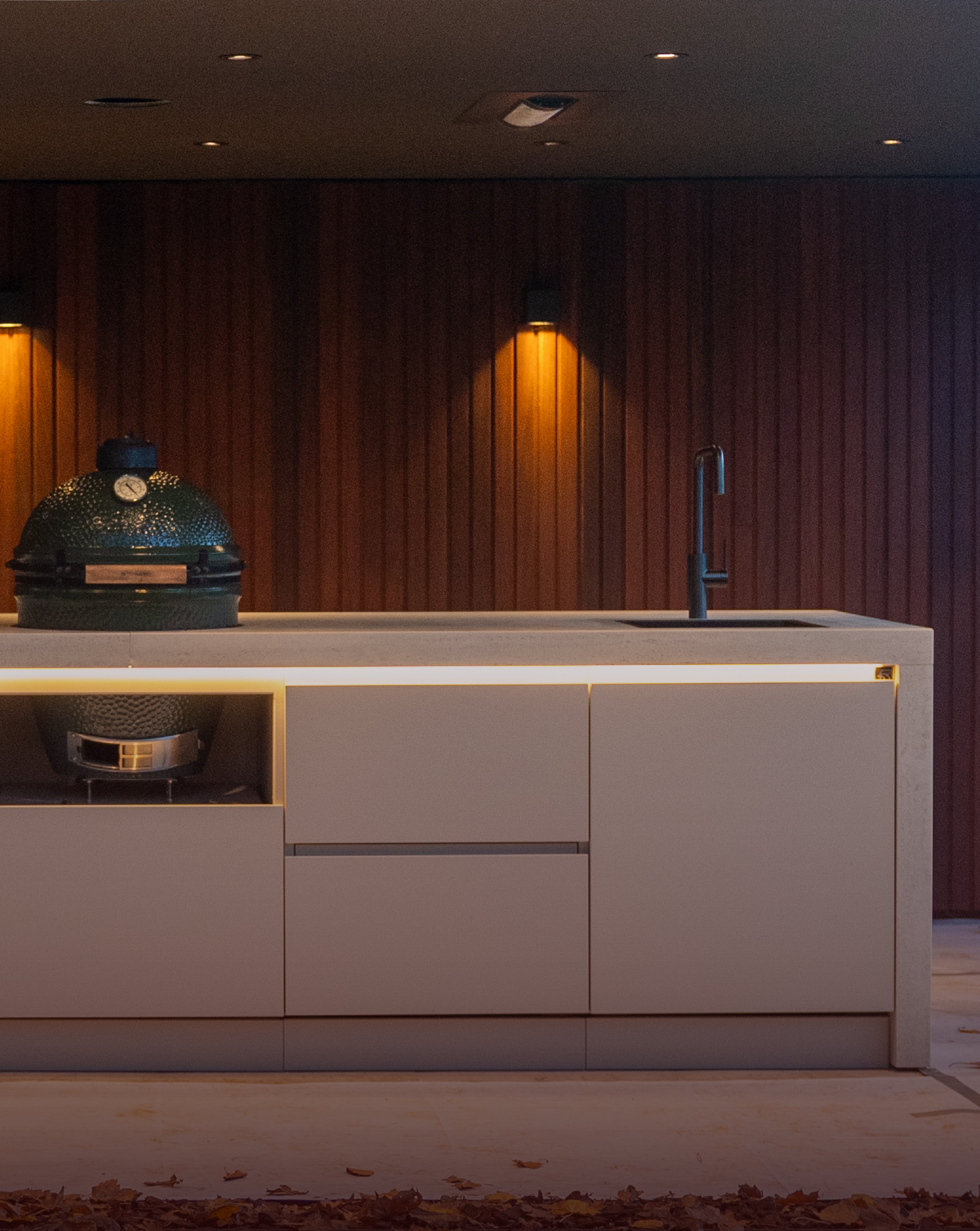 Dans cet emplacement unique, nous avons réalisé une cuisine extérieure exclusive qui combine parfaitement style et fonctionnalité.