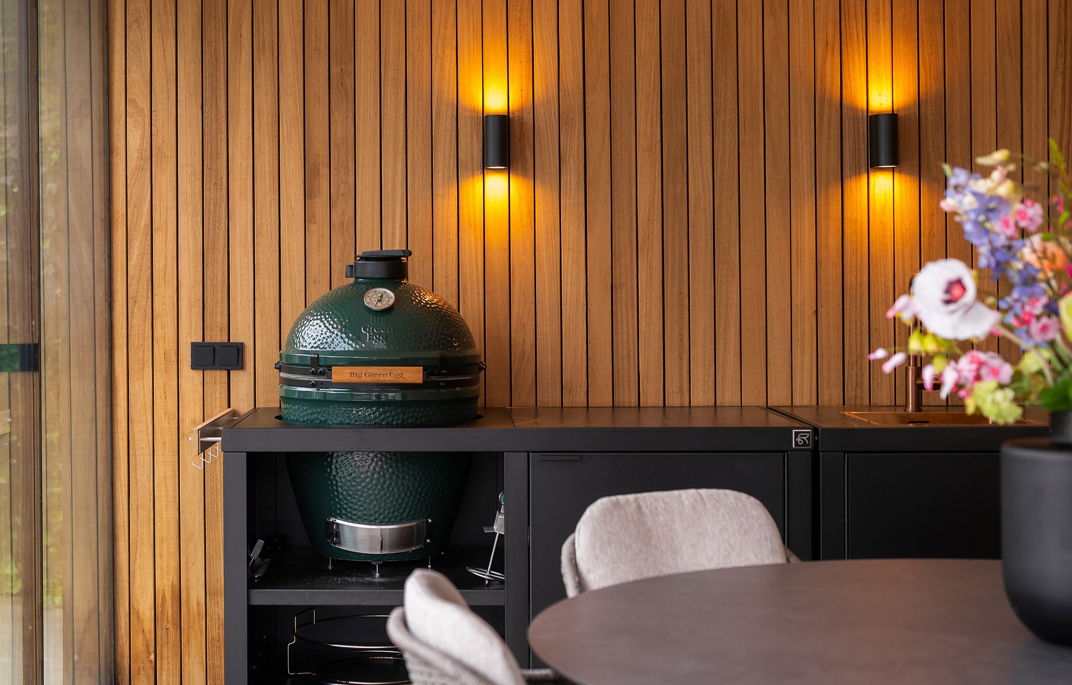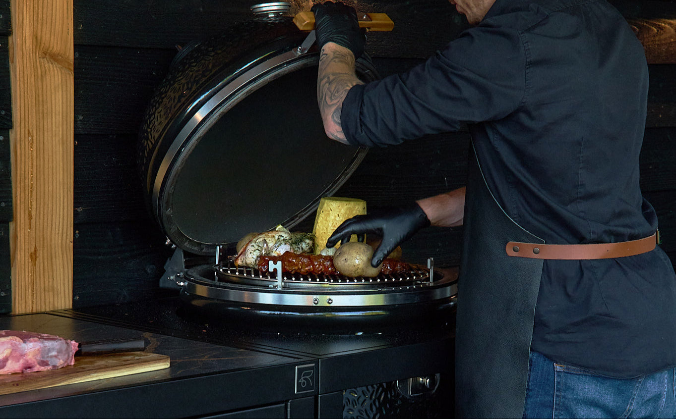 Nos cuisines d'extérieur sont adaptées à tous les barbecues en céramique courants. Que vous cuisiniez avec un Big Green Egg, The Bastard, Kamado Joe ou Monolith – grâce à notre système universel, tout s'adapte parfaitement.
