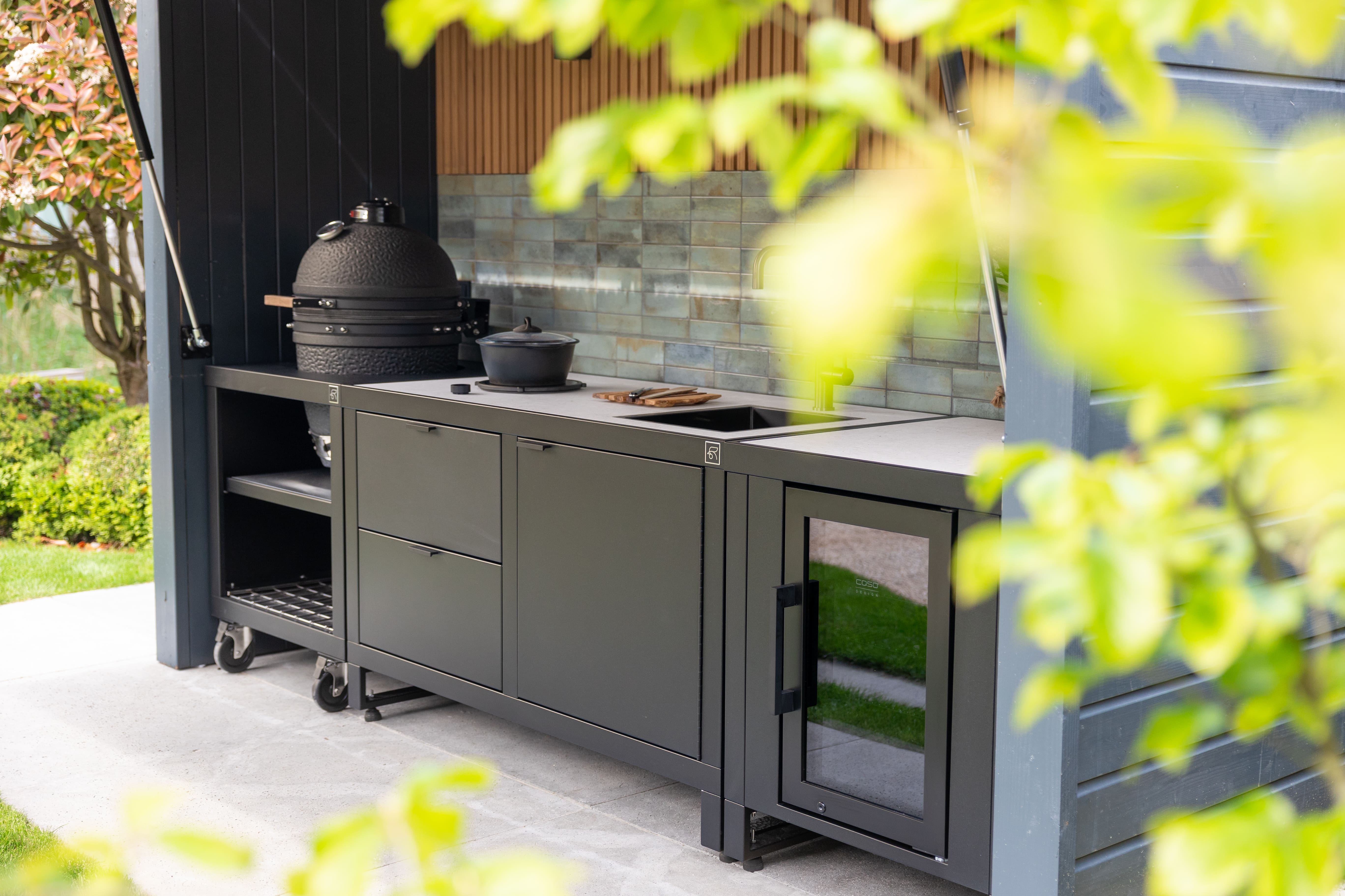 La cuisine extérieure Rubix est construite de manière modulaire avec des matériaux de haute qualité tels que l'acier inoxydable et l'acier galvanisé, ce qui garantit une longue durée de vie et une résistance à la rouille. Avec le Rubix, vous pouvez composer la cuisine extérieure entièrement selon vos souhaits, et même après l'achat, l'étendre avec différents modules.