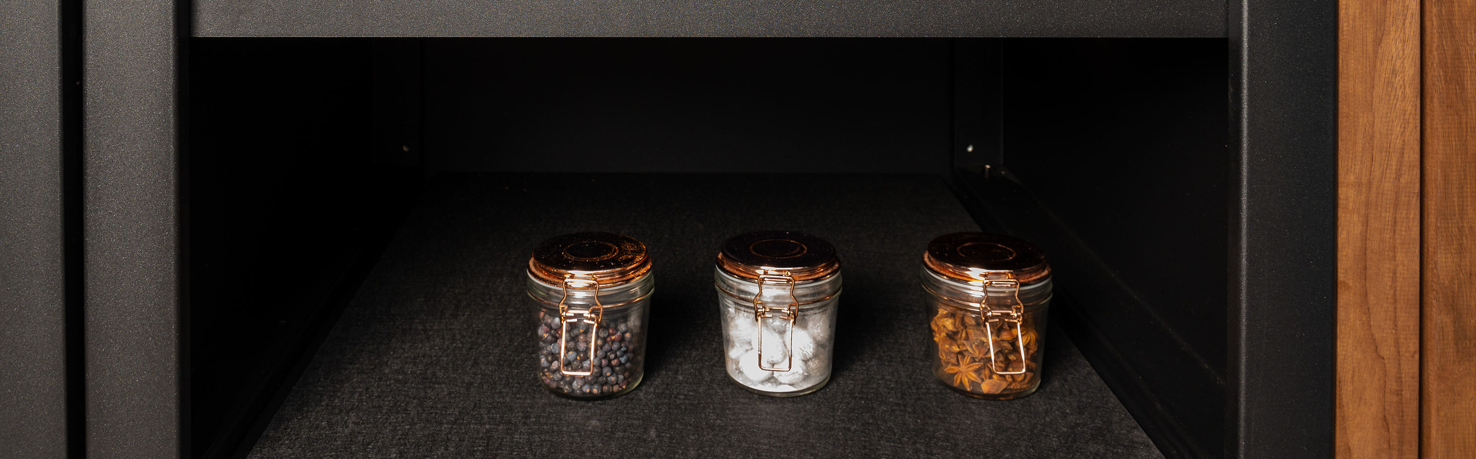 Pour nos plans de travail et nos portes, nous utilisons exclusivement du bois Fraké. Ce type de bois est thermiquement modifié, ce qui en fait un matériau très adapté à une utilisation en extérieur.