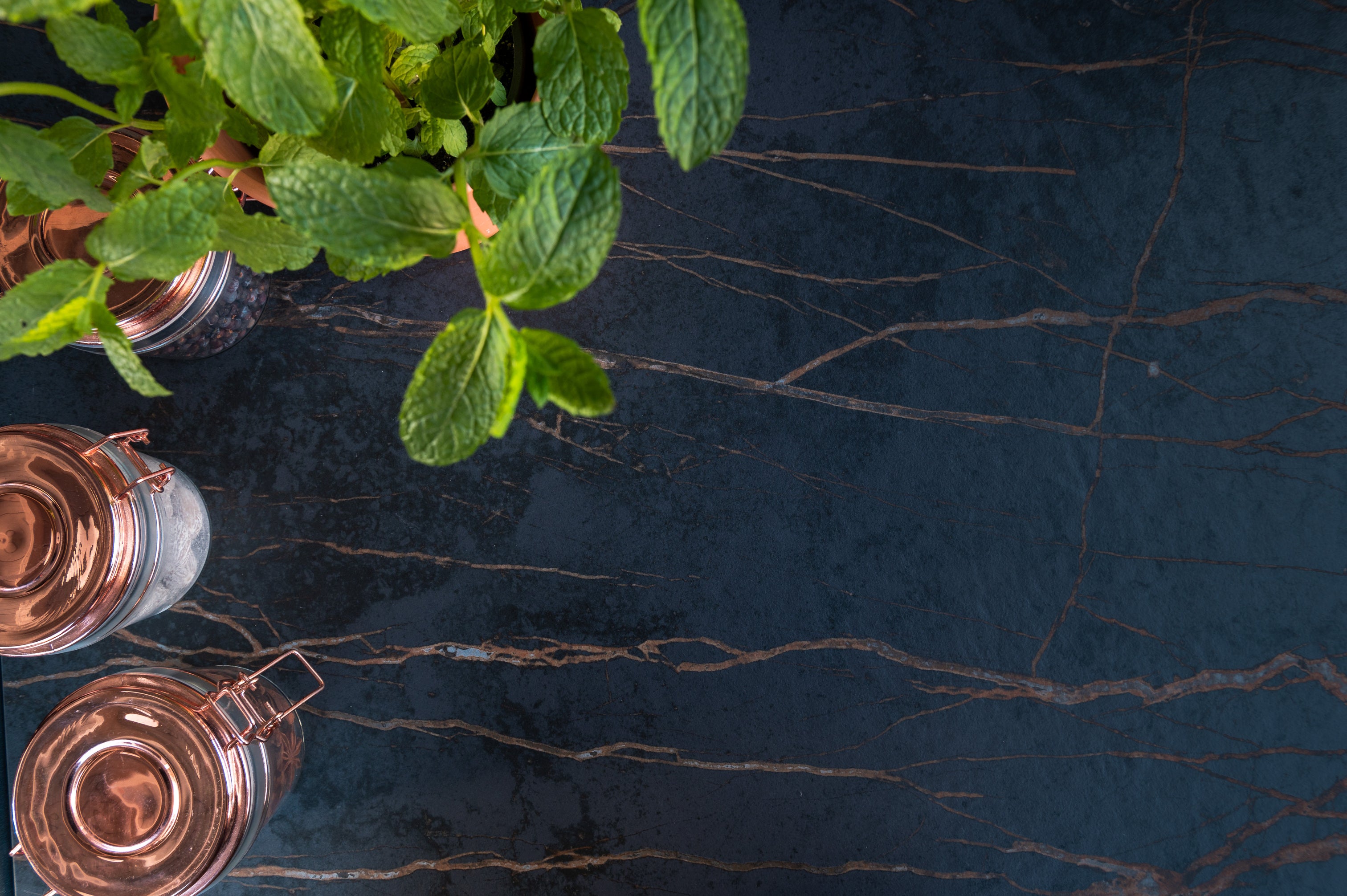 Avec un plan de travail en Dekton, vous n'avez pas à craindre les taches tenaces de par exemple graisse, vin et rouille. Dekton a une très haute résistance aux UV et à la chaleur (jusqu'à 250 °C), vous pouvez donc sans souci poser une poêle à griller chaude sur votre plan de travail.